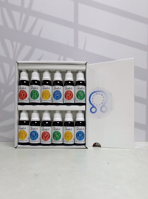 Este set reúne 12 esencias de Nodos Lunares, inspiradas en el impulso evolutivo que guía al alma desde los talentos ya desarrollados hacia territorios nuevos de crecimiento. Cada esencia acompaña el tránsito de un signo hacia su expansión consciente, facilitando integrar la experiencia del pasado y avanzar con claridad, voluntad y propósito hacia el destino personal.